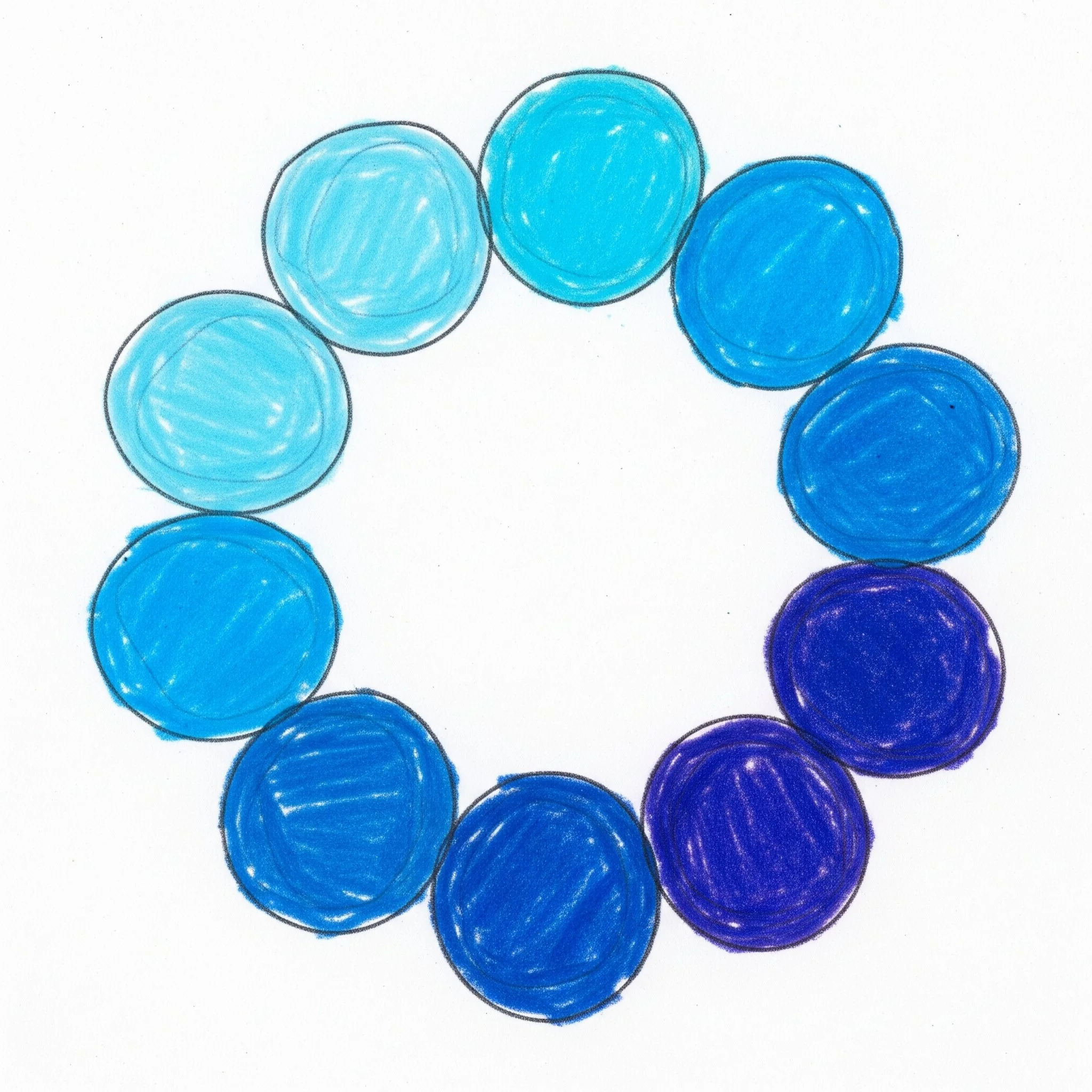 Crea tu escala de azules: Comienza con un azul muy pálido, casi blanco, en un segmento. En el siguiente, hazlo un poco más oscuro, y así sucesivamente, aumentando gradualmente la intensidad del azul en cada segmento hasta llegar a un azul muy oscuro, casi negro. La clave es que la transición sea lo más suave posible. Puedes mezclar tus pinturas para obtener la gama más amplia de tonos.